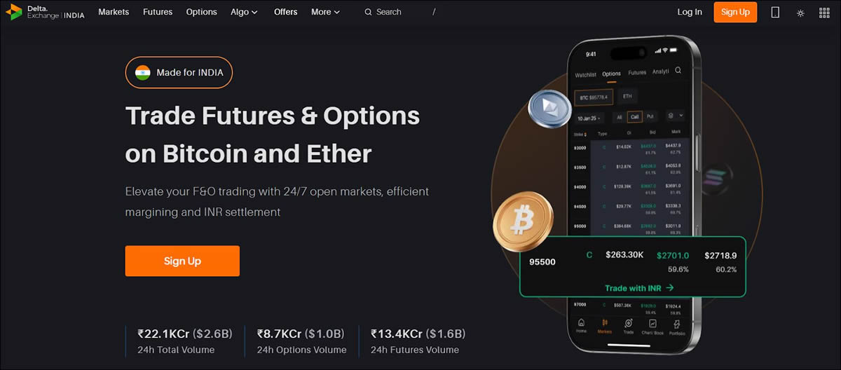 Delta Exchange是加密货币期权交易的热门选择,尤其适合印度及其他地区的交易者。它提供比特币和以太坊的欧式看涨和看跌期权,全球用户以USDT结算,印度用户则以印度卢比结算。