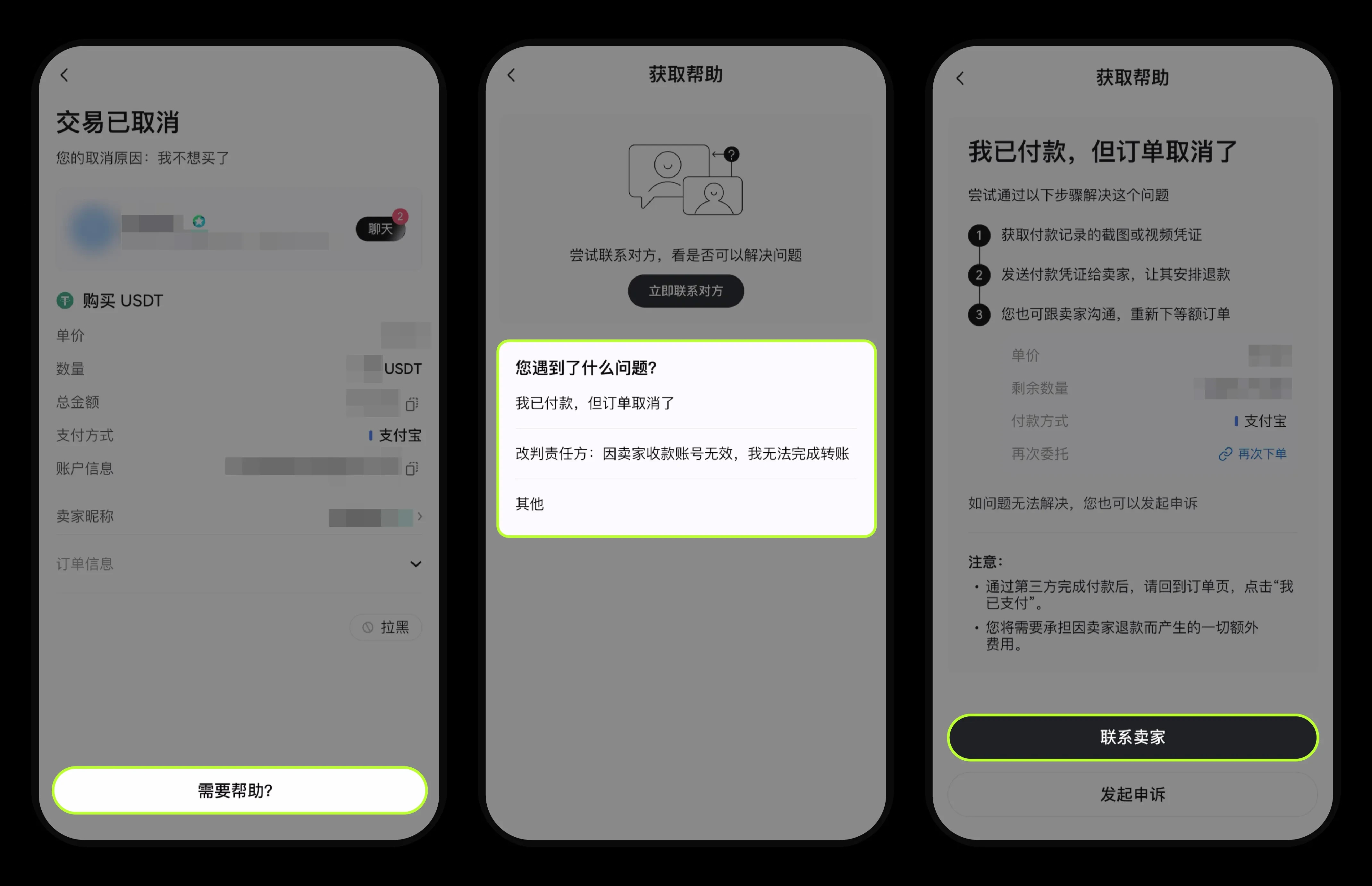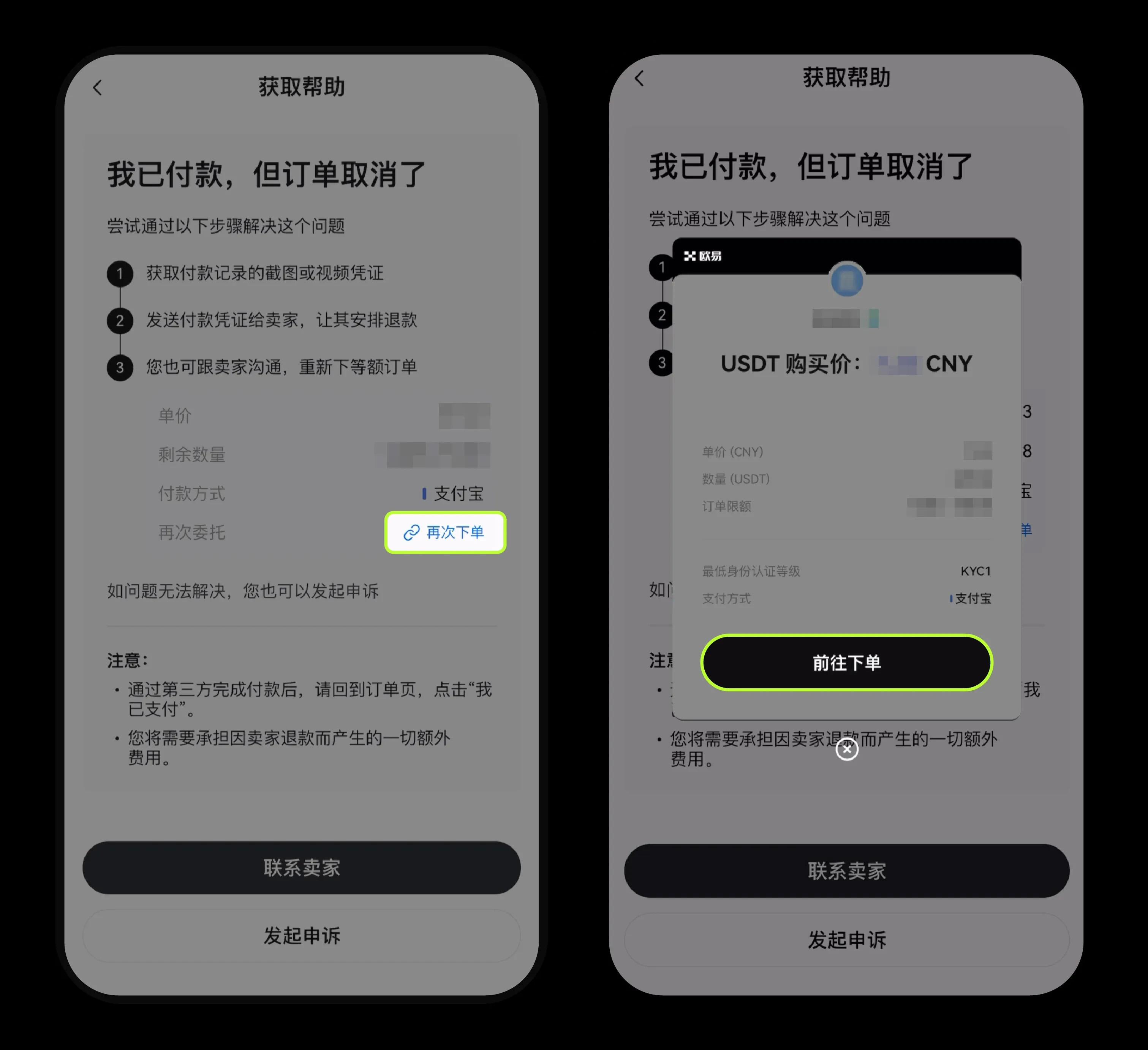 在C2C交易过程中,如果你遇到纠纷,比如买币被限制次数、对方不放币、对方不付款、对方非实名或联系不上对方等问题,你可以进行申诉。