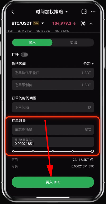 答:将大订单拆分为多个小订单,分散在一段时间内执行,不会对市场产生明显的大单冲击信号,降低了被市场察觉和针对性狙击的风险,使交易在相对隐蔽的情况下完成。 - 问:在欧易APP上如何设置时间加权策略?