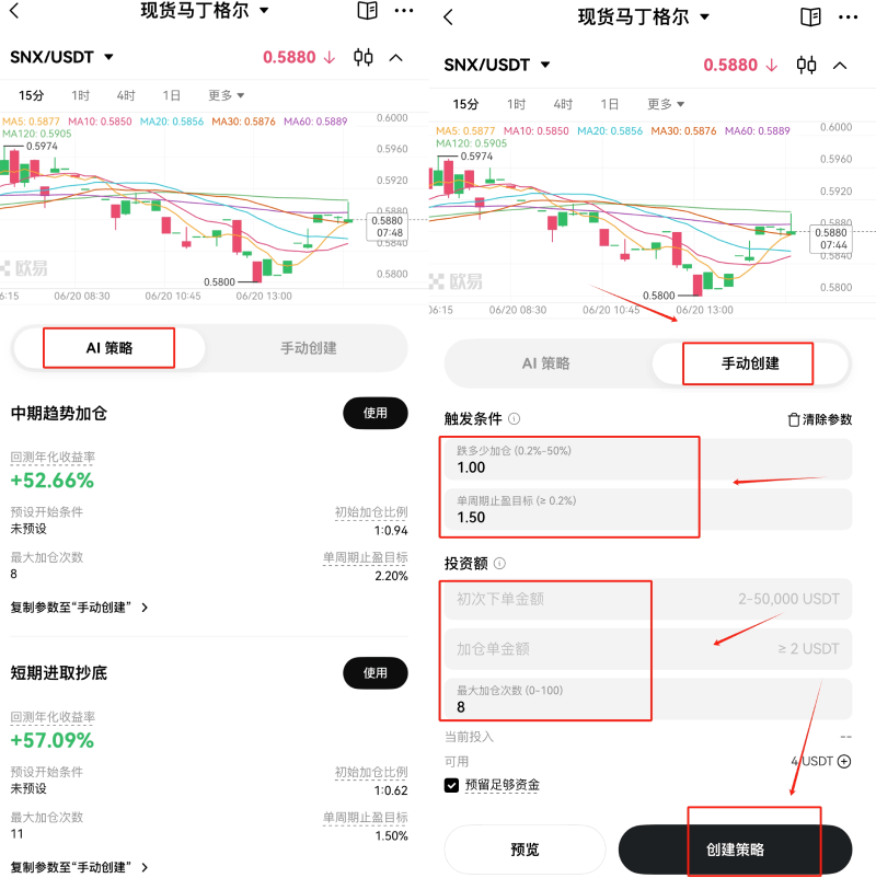 4. 如何在OKX交易所使用现货马丁格尔策略?