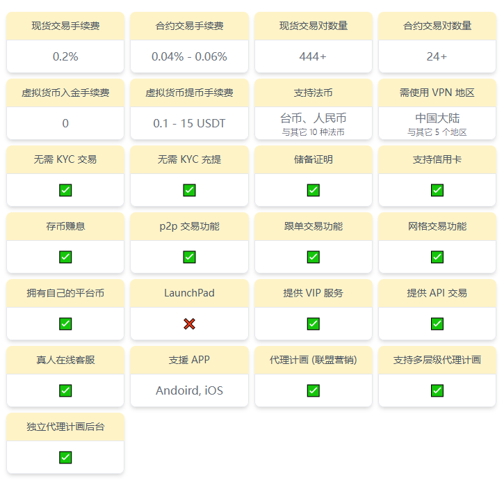 | KYC所需资料 | 无 | 身份信息 | 人脸识别 |