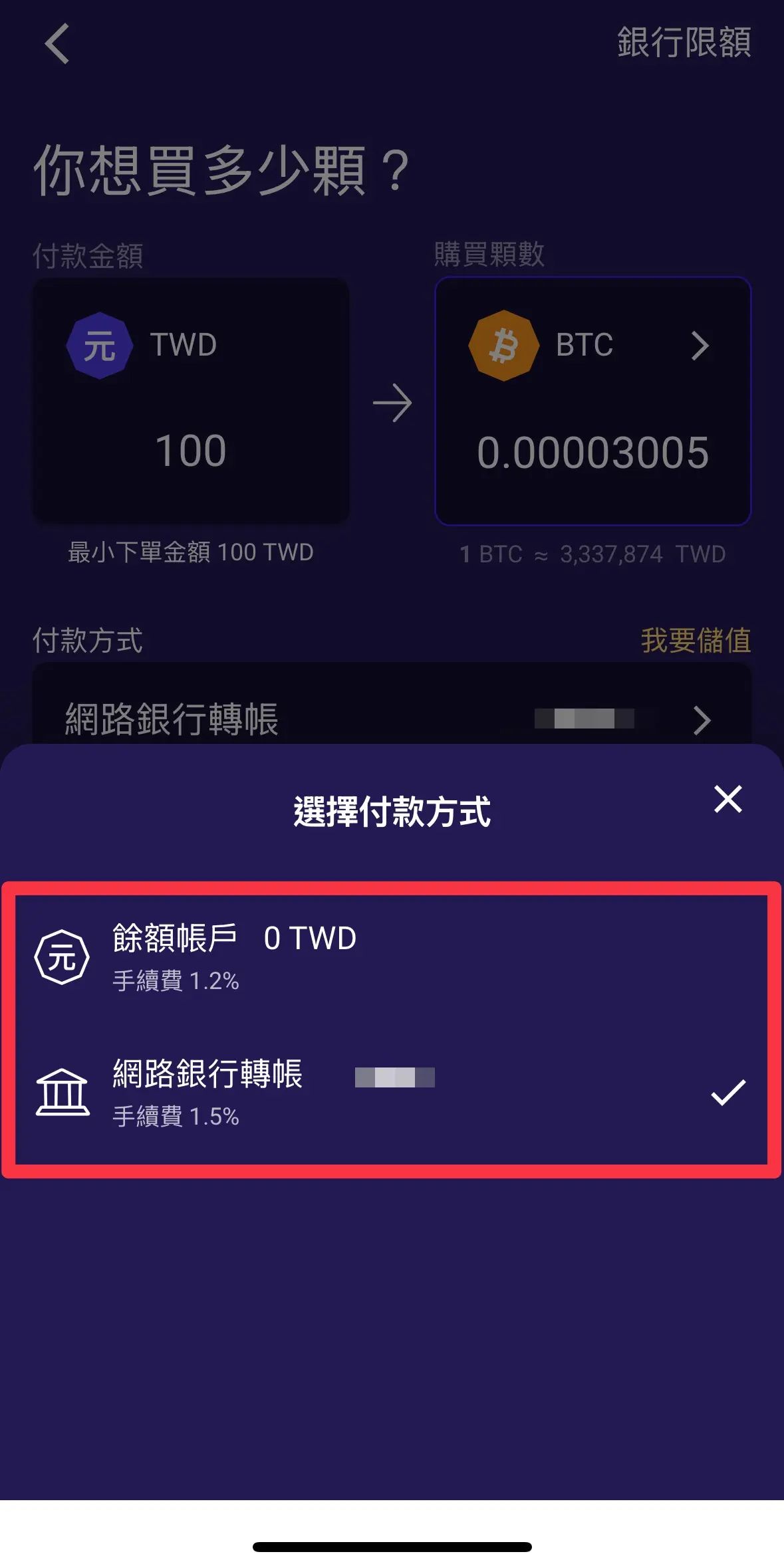 这种方式适合有经验且希望即时购买的用户,但交易手续费为 1.5 %,比预先储值手续费高出了 0.3 %。