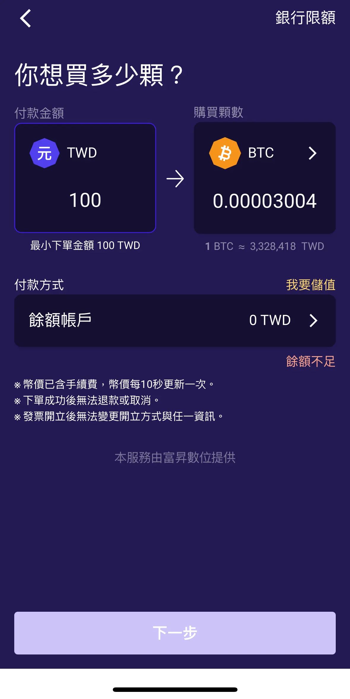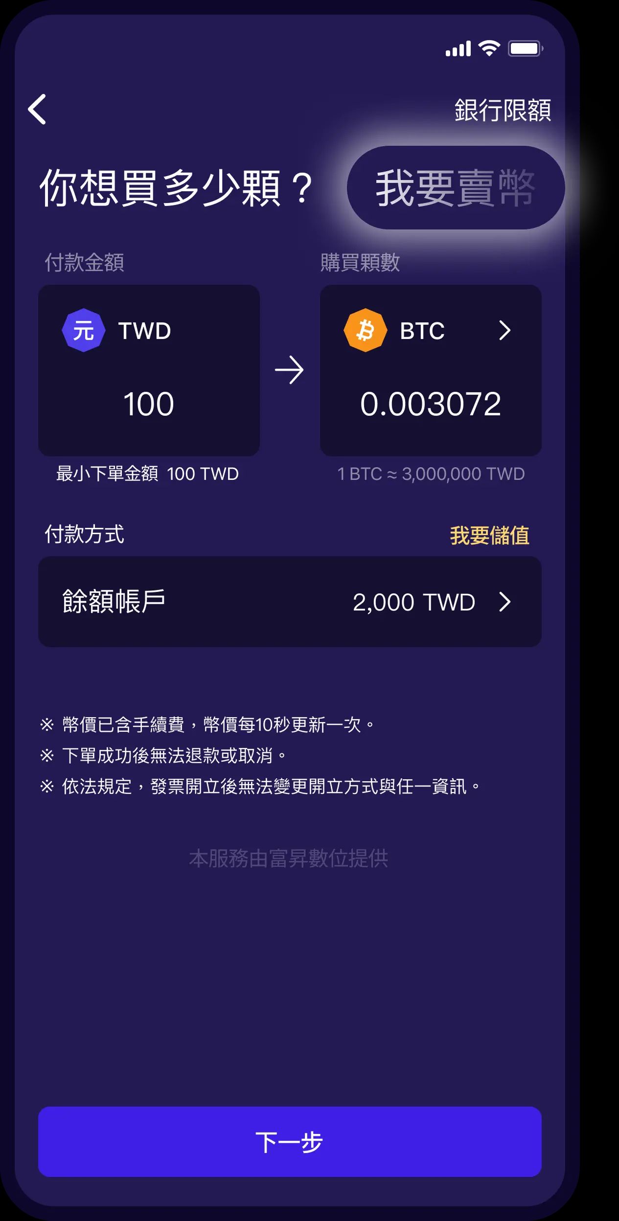 - 低门槛投资:最低只要新台币 100 元即可购入比特币或以太币,相当于一个便当的价格,让小资族也能轻松试水温。