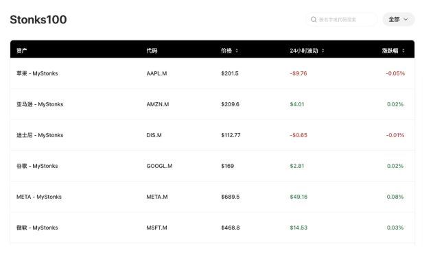 MyStonks是在Meme币Stonks社区CTO基础上创建的去中心化加密资产交易平台。用户也可以在这个平台的Stonks 100板块购买美股,其中包括95支美股和5只在美国上市的加密和股票ETF,涵盖了苹果、亚马逊、迪士尼、谷歌、Meta、微软、奈飞、英伟达等知名公司。