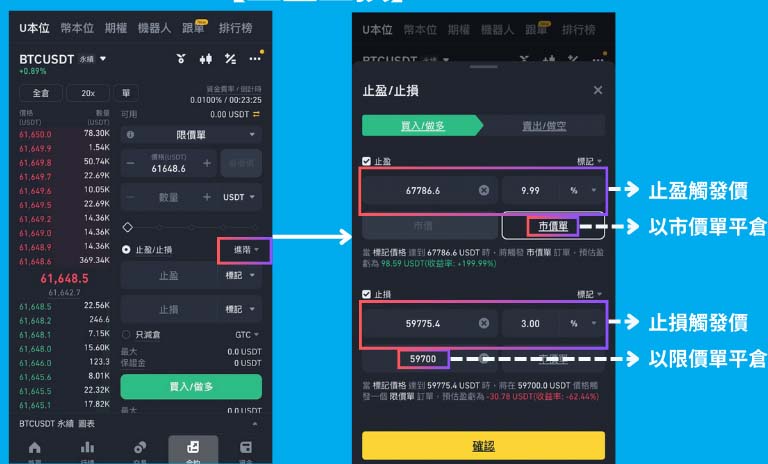 币安合约下单步骤6:止盈止损