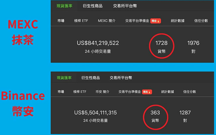 根据Coingecko数据显示,抹茶上线的币种多达1,700种以上,是币安的4.7倍之多!