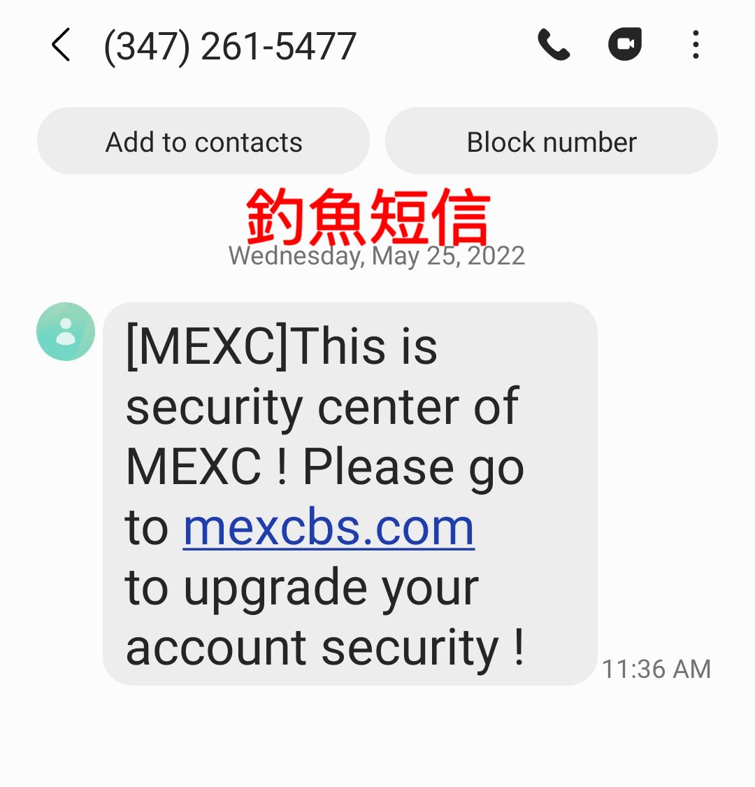 钓鱼简讯要求尽速登入假网站,Source:MEXC