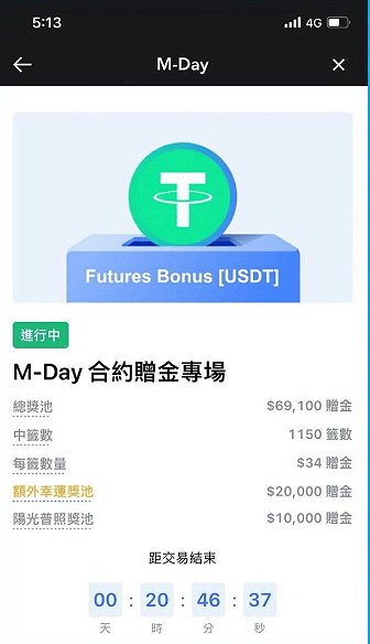 只要您在抹茶交易合约,就可以参加天天抽34 USDT赠金的M-Day活动。