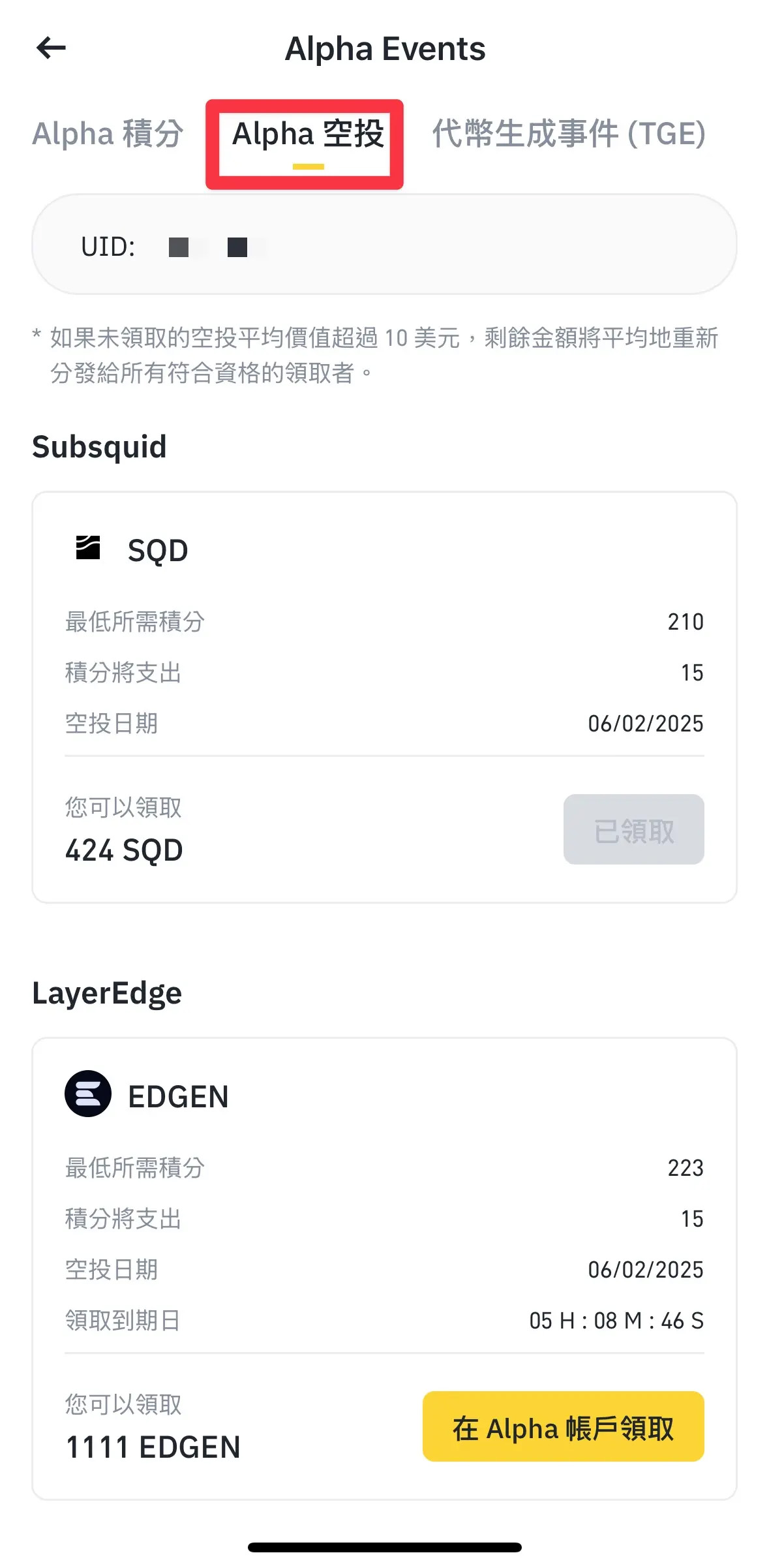 - 不建议领取以太坊区块链的空投,链上手续费较高(除非你会开合约套保)