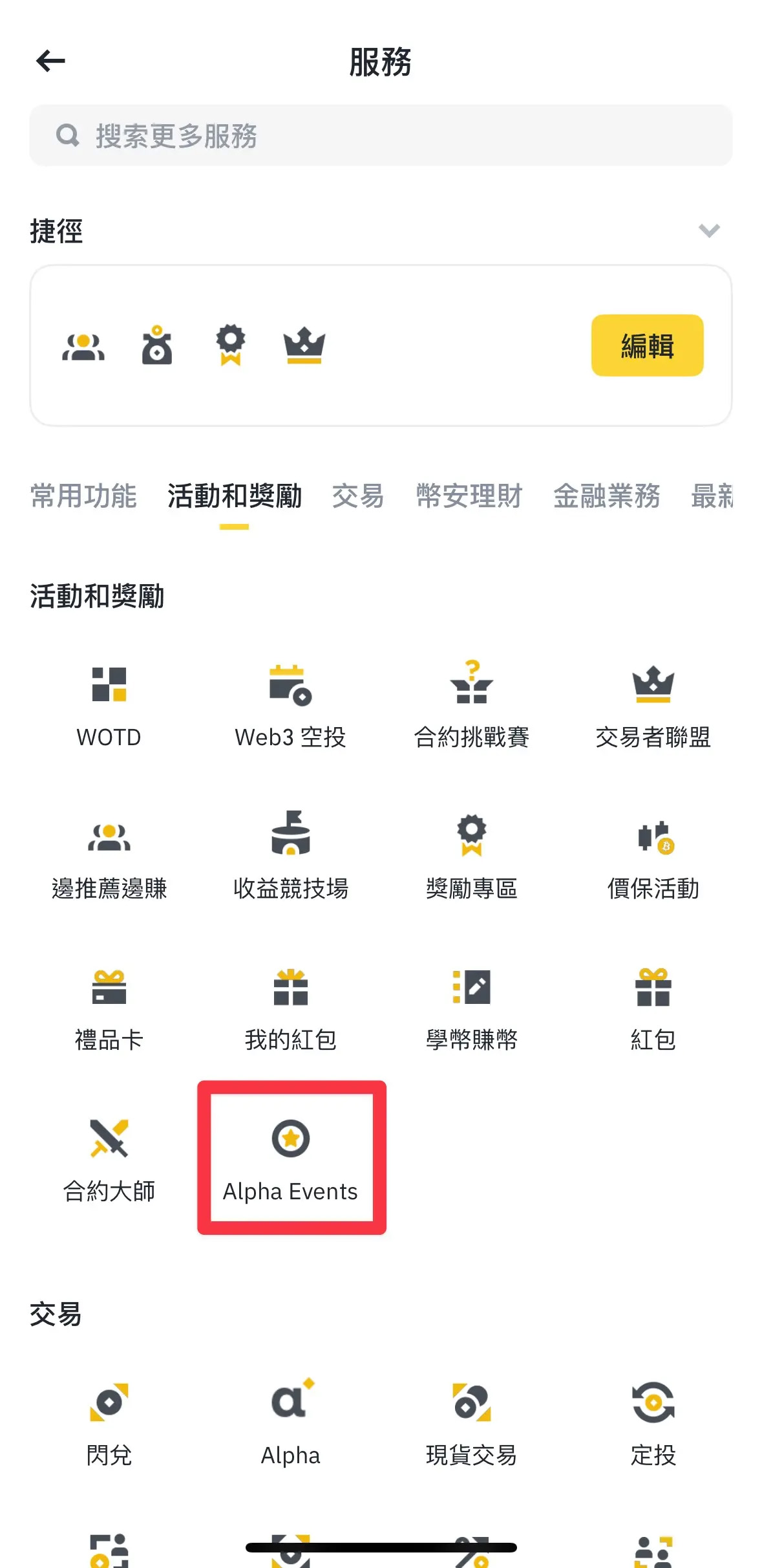 - 找到Alpha活动:在App的服务页面内,找到「Alpha Events」,确认目前积分