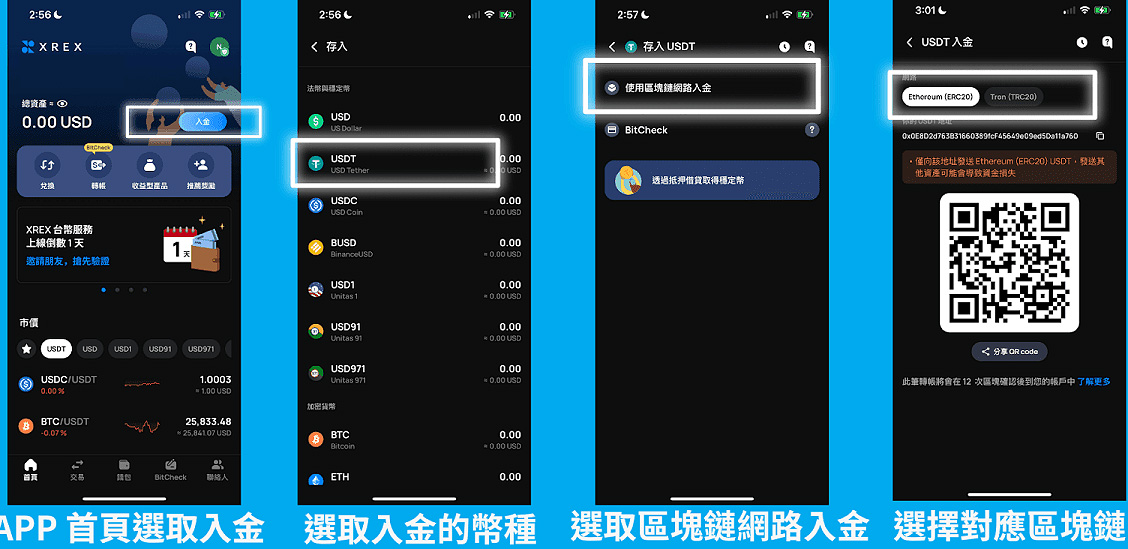 XREX支持三种主要入金方式:台币入金、美元入金和加密货币入金。其中,XREX是台湾少数支持美元入金的交易所。