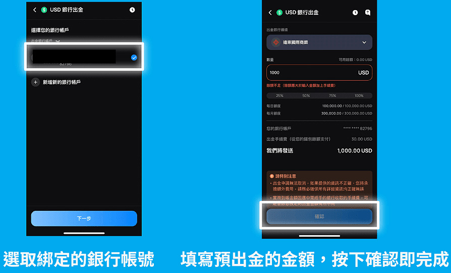 - 台币出金:可以将账户中的台币提取到绑定的银行账户