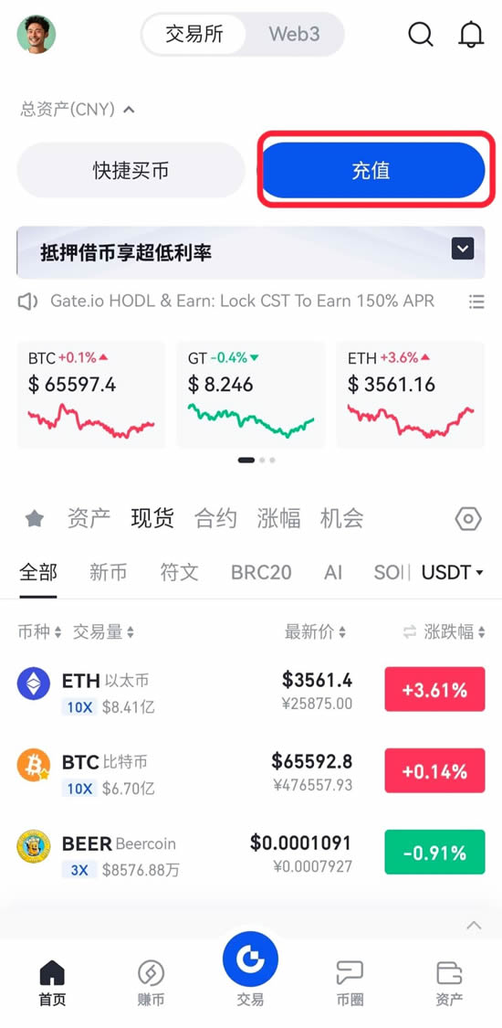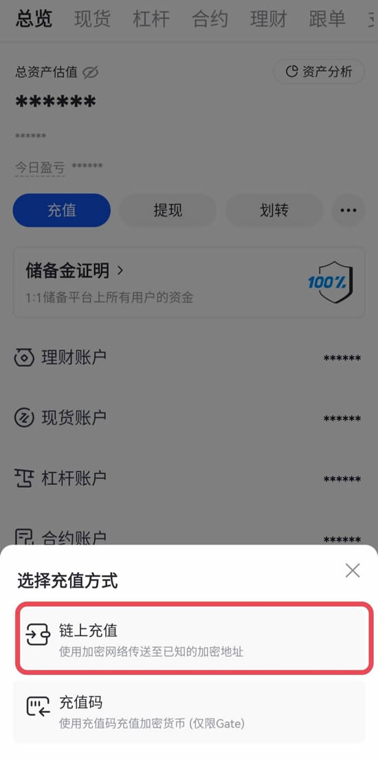 答:登录Gate.io App后,可以在右下角点击"资产"——"充值",或者在首页直接点击"充值"按钮进入充值页面。